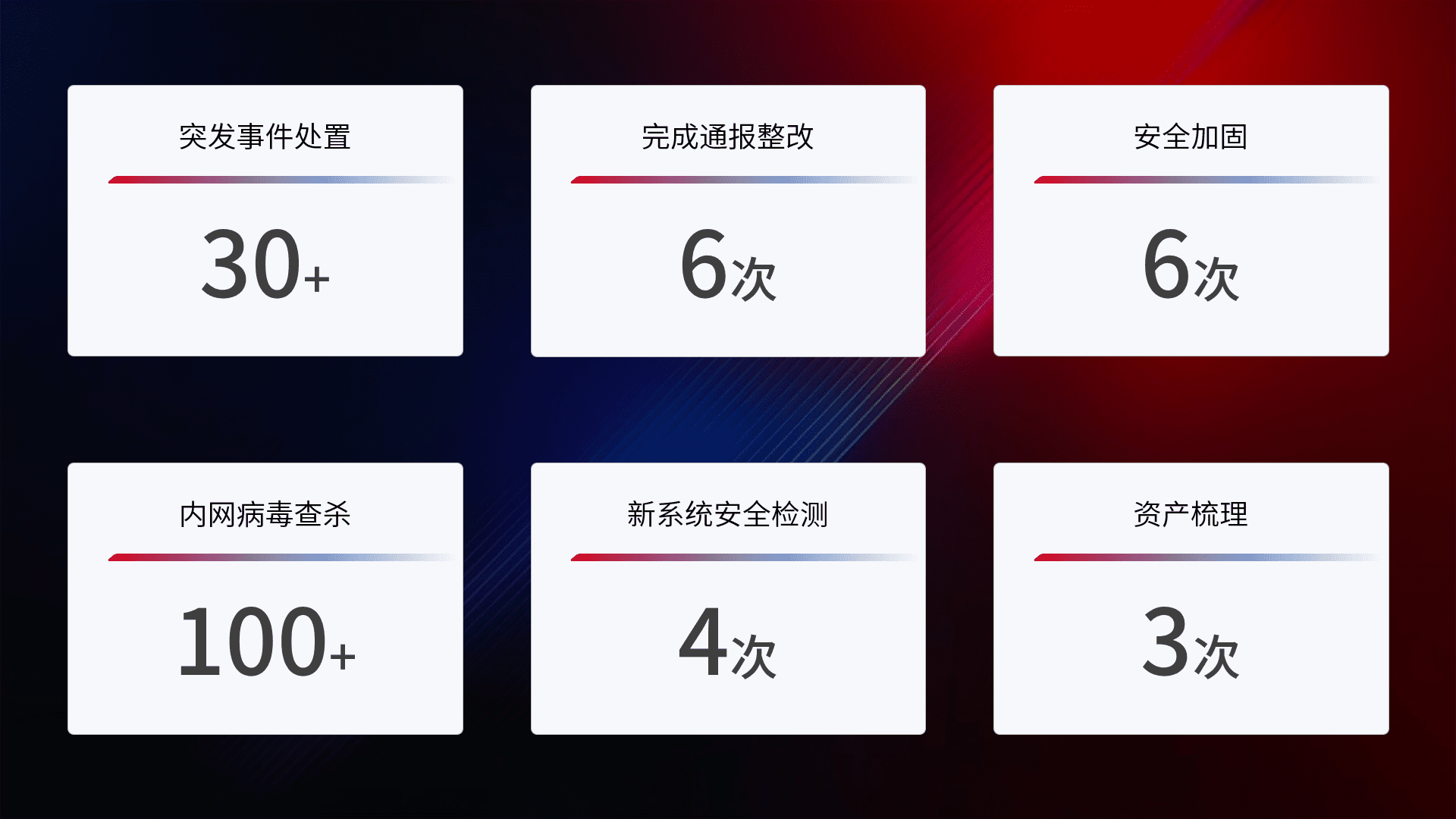 网络安全加固与风险管理:通过技术加固手段,,,如加强区域隔离,,,,缩减攻击内网横向移动的范围;优化现有网络安全管理制度,,降低网络威胁暴露面,,,,减少被黑客攻击的可能性。。